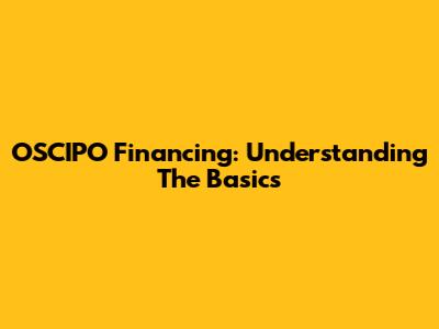 OSCIPO Financing: Understanding The Basics