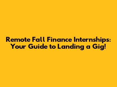 Hey guys! So, you're on the hunt for fall internships in finance, and you're specifically looking for remote opportunities? That's awesome! The world of finance is vast and exciting, and landing an internship, especially a remote one, can be a game-changer for your career. Think about it: gaining real-world experience, building your network, and maybe even scoring a full-time offer, all from the comfort of your own home. Pretty sweet deal, right? In this guide, we're going to dive deep into everything you need to know about snagging those coveted remote fall finance internships. We'll cover where to find them, how to make your application shine, and what to expect once you land one. So, grab your favorite beverage, get comfy, and let's get started on this journey to your dream finance internship!