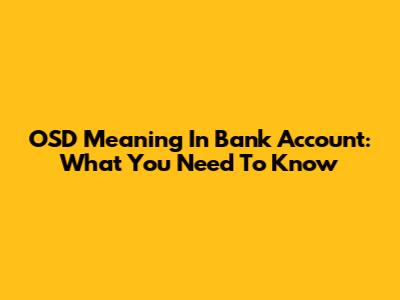 OSD Meaning In Bank Account: What You Need To Know