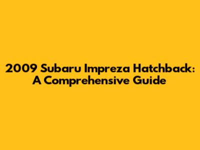 2009 Subaru Impreza Hatchback: A Comprehensive Guide