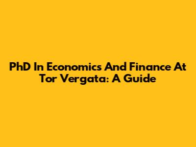 PhD In Economics And Finance At Tor Vergata: A Guide