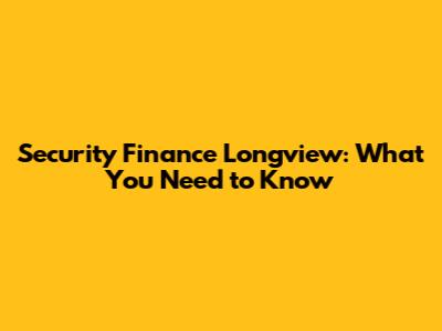 Understanding Security Finance Longview and Its Services