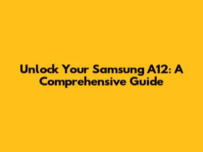 Unlock Your Samsung A12: A Comprehensive Guide