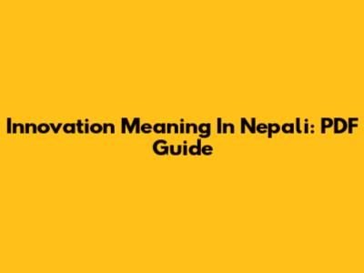 Innovation Meaning In Nepali: PDF Guide