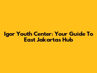 Igor Youth Center: Your Guide To East Jakarta's Hub