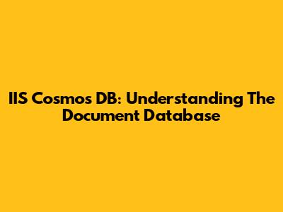 IIS Cosmos DB: Understanding The Document Database