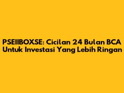 PSEIIBOXSE: Cicilan 24 Bulan BCA Untuk Investasi Yang Lebih Ringan