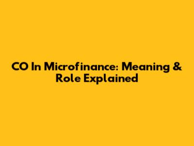 CO In Microfinance: Meaning & Role Explained