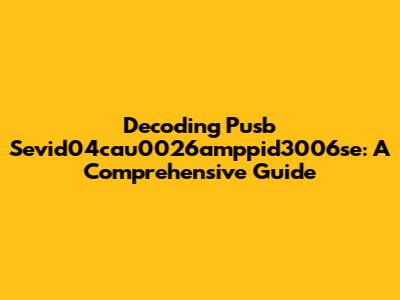Decoding Pusb Sevid04cau0026amppid3006se: A Comprehensive Guide