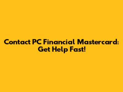 Contact PC Financial Mastercard: Get Help Fast!