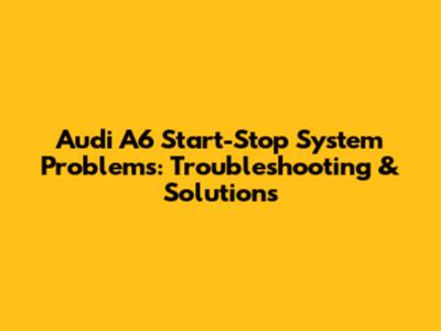 Audi A6 Start-Stop System Problems: Troubleshooting & Solutions
