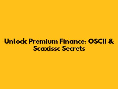 Unlock Premium Finance: OSCII & Scaxissc Secrets