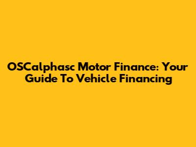 OSCalphasc Motor Finance: Your Guide To Vehicle Financing