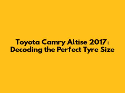 Toyota Camry Altise 2017: Decoding The Perfect Tyre Size