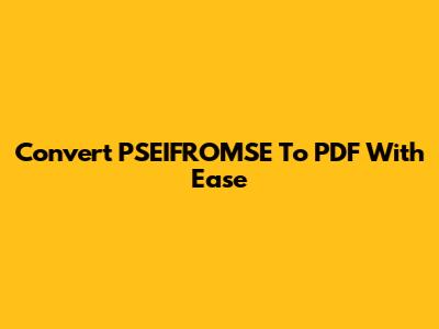 Convert PSEIFROMSE To PDF With Ease