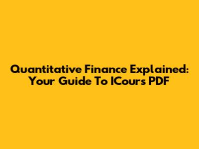 Quantitative Finance Explained: Your Guide To ICours PDF