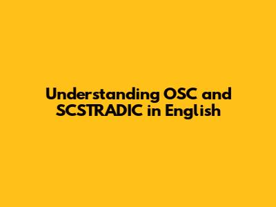 Demystifying OSC and SCSTRADIC: What Do They Stand For?