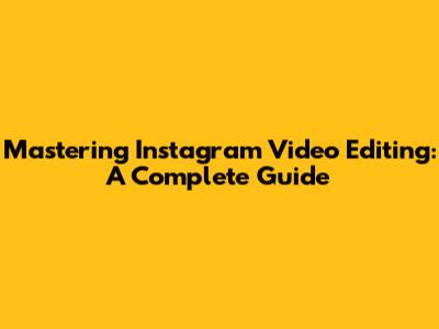 Mastering Instagram Video Editing: A Complete Guide