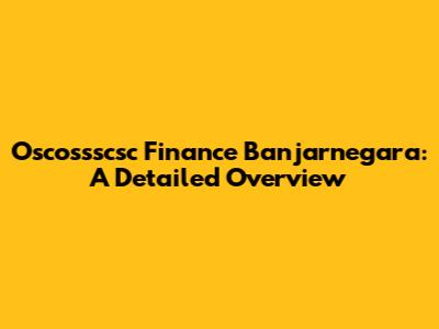 Oscossscsc Finance Banjarnegara: A Detailed Overview