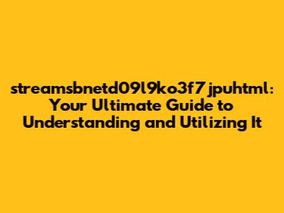Hey everyone, let's dive into the world of streamsbnetd09l9ko3f7jpuhtml! I know, it sounds like a mouthful, but trust me, understanding this can be super beneficial. We're going to break down what it is, why it matters, and how you can actually use it. Think of this as your friendly guide to navigating this often-confusing topic. Get ready to learn some cool stuff, and hopefully, clear up any questions you might have had. Let's get started!