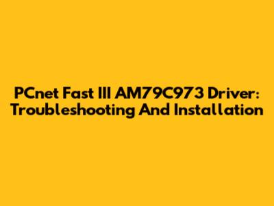 PCnet Fast III AM79C973 Driver: Troubleshooting And Installation