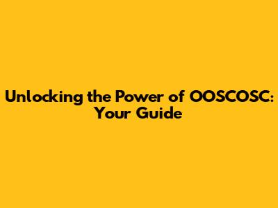 Demystifying OOSCOSC: Key Components Explained
