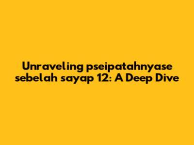 Hey guys, let's dive into something a little… mysterious! We're talking about "pseipatahnyase sebelah sayap 12". Now, I know what you're thinking: what in the world is that? Well, you're not alone! It's a phrase that sparks curiosity, and today, we're going to try to unravel its meaning and context. This exploration is going to be a fun ride, and we will try to understand its various interpretations. So, buckle up, because we're about to embark on a journey of discovery.