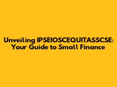 Hey guys! Let's dive into the world of IPSEIOSCEQUITASSCSE small finance. It might sound like a mouthful, but trust me, understanding this can open doors to some seriously cool opportunities, especially if you're looking to get a handle on your finances or even explore some investment options. We will break down this complex topic into easily digestible pieces. So, grab your favorite beverage, sit back, and let's unravel this financial puzzle together. We'll look into what it is, its role, how it works, and why it matters to you. So, what exactly is IPSEIOSCEQUITASSCSE? Well, it's not a single entity, but rather a unique combination of concepts and the entities involved in the small finance ecosystem. It touches upon various aspects, including financial institutions, investment strategies, and the overall economic landscape. We'll start with the basics and gradually move into more complex details. By the end, you'll be able to understand how IPSEIOSCEQUITASSCSE fits into the grand scheme of small finance. We'll focus on the key areas that you need to know. Remember, the goal here is to empower you with the knowledge that will help you make better financial decisions, whether it's managing your personal finances, starting a business, or simply understanding the broader economy. Let's get started, shall we?