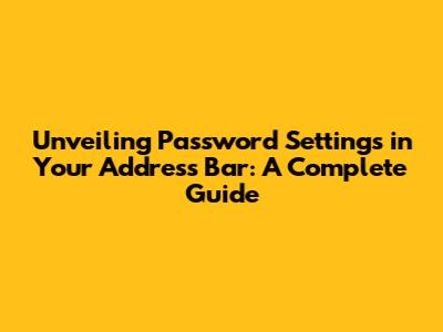 Hey guys! Ever wondered about the secrets lurking behind your address bar when it comes to password settings? You know, that little area where you type in websites? Well, buckle up, because we're about to dive deep into how you can manage your passwords directly from there. We're talking about a super convenient way to access and tweak your password-related settings without having to navigate through a bunch of menus. This guide is designed to be your go-to resource, whether you're a seasoned techie or just starting to explore the digital world. We'll break down everything in a way that's easy to understand, covering the ins and outs of password settings in the address bar across different browsers and platforms. So, grab your favorite beverage, get comfy, and let's unravel the mysteries of password management, shall we?