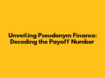 Hey guys! Ever stumbled upon the term "Pseudonym Finance" and felt a little lost? Well, you're not alone! It's a fascinating corner of the financial world, and today, we're diving deep to unravel one of its core concepts: the payoff number. Let's break down everything you need to know, from what it is, how it works, and why it matters. Trust me; understanding this can be a real game-changer if you're exploring the world of decentralized finance (DeFi). We're going to cover a lot of ground, so buckle up and get ready for a deep dive into the world of Pseudonym Finance!