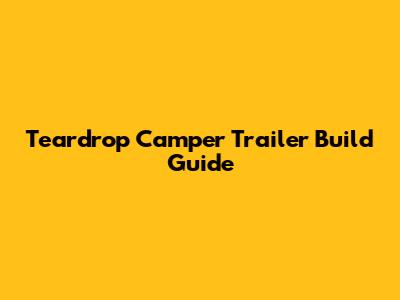 Teardrop Camper Trailer Build Guide