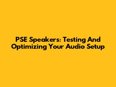 PSE Speakers: Testing And Optimizing Your Audio Setup