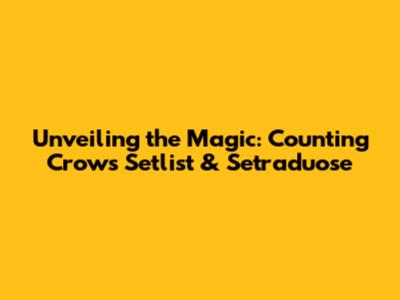 Some fans use "setraduose" to refer to the band's ability to improvise and create unique moments during their shows. This could involve extended instrumental sections, unexpected song arrangements, or spontaneous interactions with the audience. The term reflects the unpredictable and exciting nature of a Counting Crows performance. The band is known for constantly changing up their setlists and adding unique elements to each show. This can be something as simple as an unexpected cover song or a guest appearance. This creates a sense of surprise and excitement that contributes to the "setraduose" experience.
