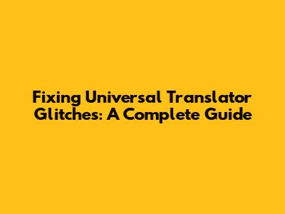 Fixing Universal Translator Glitches: A Complete Guide