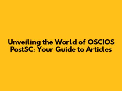 Hey guys! Ever stumbled upon "OSCIOS PostSC" and scratched your head wondering what it's all about? Well, you're not alone! This article is your friendly guide to everything related to OSCIOS PostSC, breaking down the articles and their significance in the digital landscape. We'll dive into what it is, how it works, and why you should care. Buckle up, because we're about to explore the fascinating world of OSCIOS PostSC articles, making it easy to understand for everyone, from newbies to seasoned pros. Let's get started, shall we?