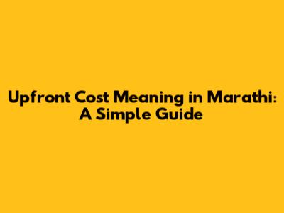 Upfront Cost in Marathi: सोप्या भाषेत (Sopyā Bhashat)
