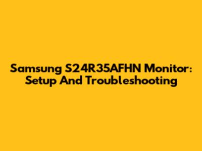 Samsung S24R35AFHN Monitor: Setup And Troubleshooting