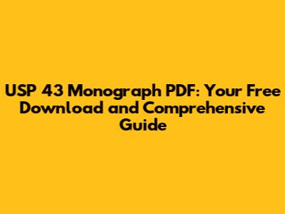 In essence, the USP 43 Monograph PDF provides a complete guide for understanding and complying with pharmaceutical standards. It covers everything from the chemical properties of drugs to the testing methods and quality control procedures. It is a comprehensive resource for ensuring that medicines are safe, effective, and meet the necessary standards for quality and purity.