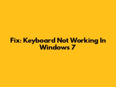 Fix: Keyboard Not Working In Windows 7