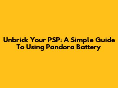 Unbrick Your PSP: A Simple Guide To Using Pandora Battery