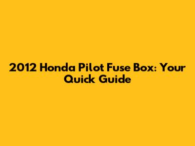 2012 Honda Pilot Fuse Box: Your Quick Guide