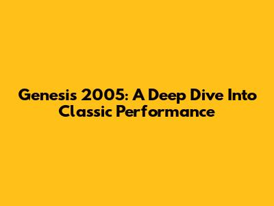Genesis 2005: A Deep Dive Into Classic Performance