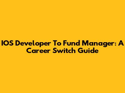 IOS Developer To Fund Manager: A Career Switch Guide