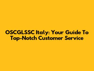 OSCGLSSC Italy: Your Guide To Top-Notch Customer Service