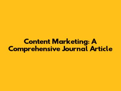 Content Marketing: A Comprehensive Journal Article